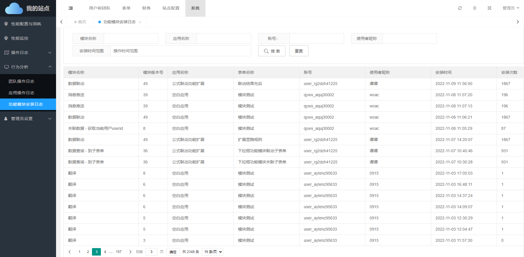 功能插件是表单体系中非常重要的扩展功能,用户的每次安装,都会记录在后台,方便管理员了解功能插件的安装情况。