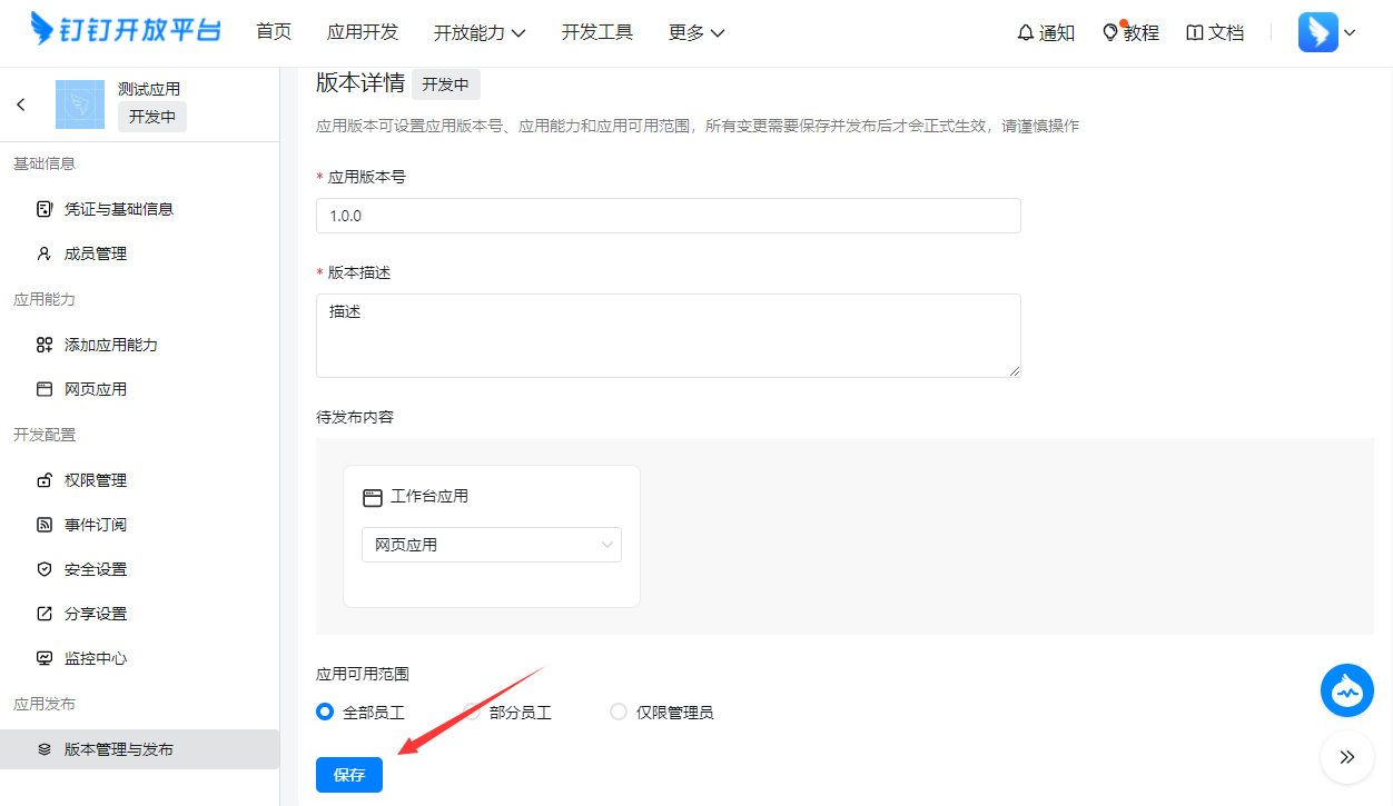 访问(https://open-dev.dingtalk.com/v2/fe/app#/corp/app)
