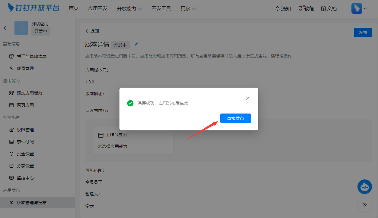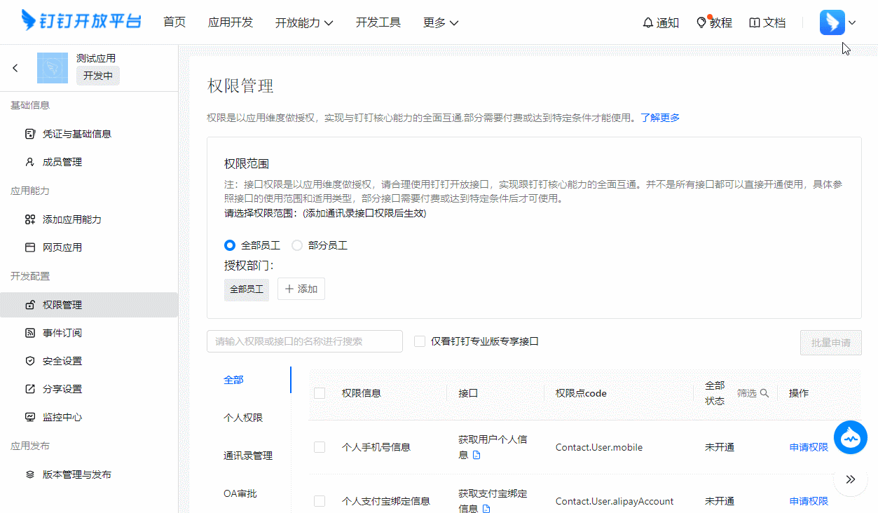 平台的钉钉应用绑定采用了钉钉【企业内部开发】的模式对接,使用该模式对接,可以获取更多的能力。