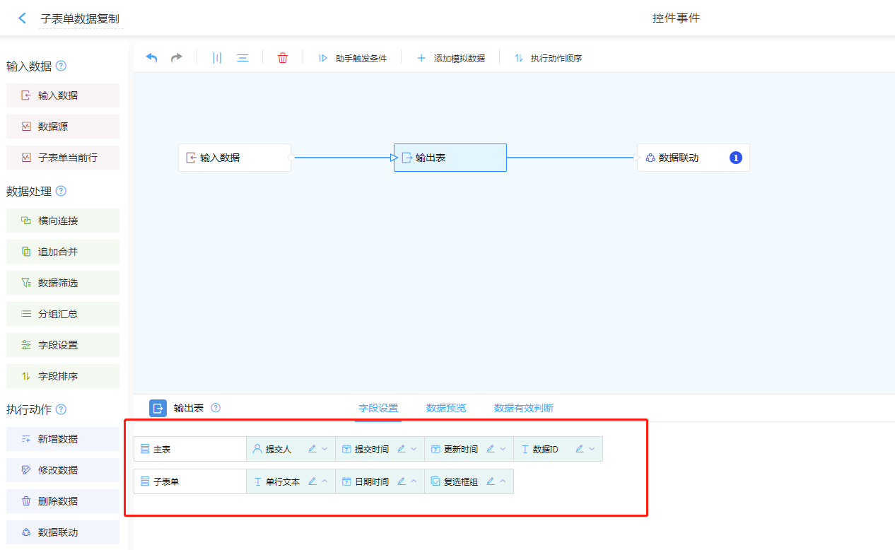 - 重复[步骤1-4],将子表单内需要联动的控件一次设置完成。
