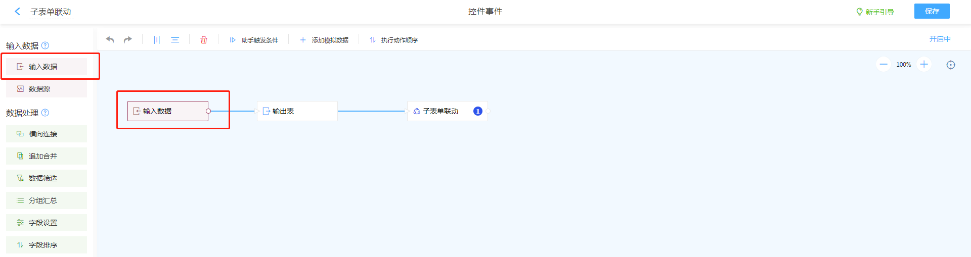 通过对控件进行数据助手配置,实现将普通字段数据填充进入子表单。