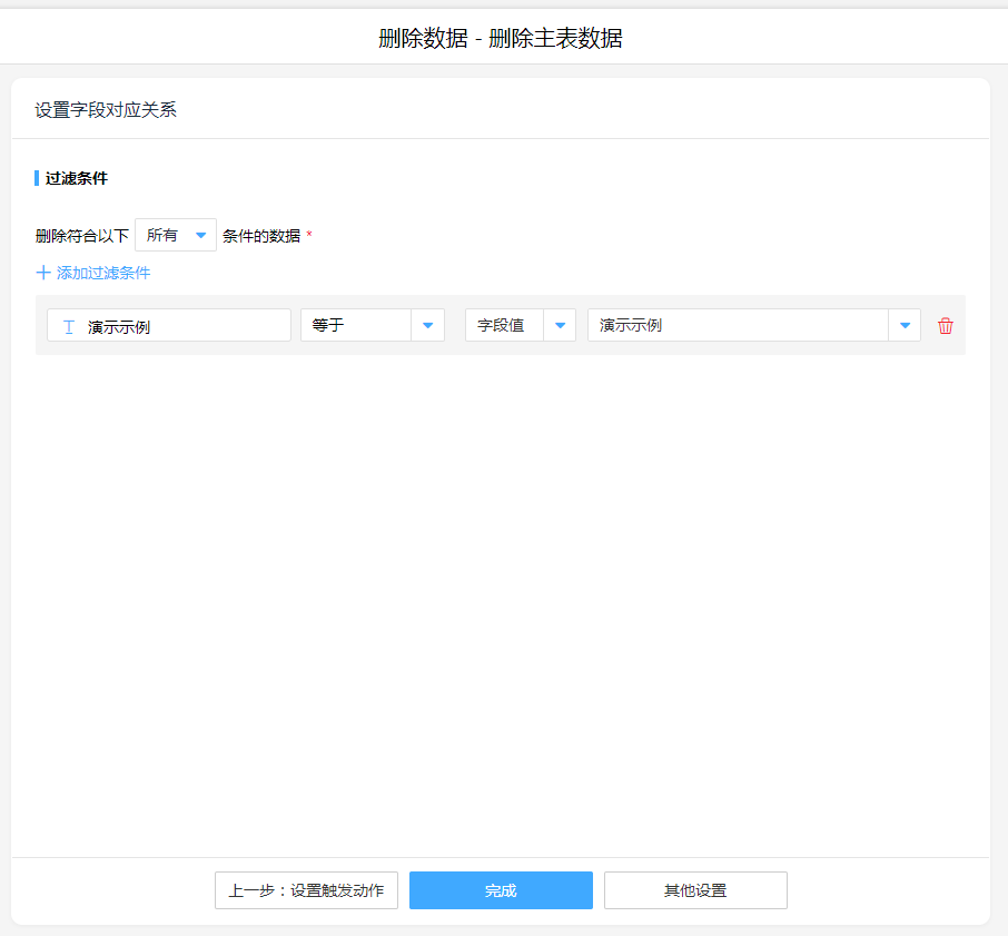 - 设置过滤条件,需要删除的数据项。