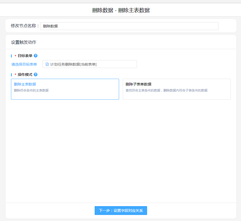 - 进入流程表单的计划任务配置页面,点击数据助手进入助手配置
