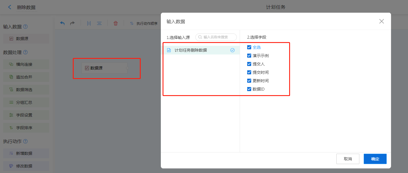 数据源,选择需要进行数据删除的表单