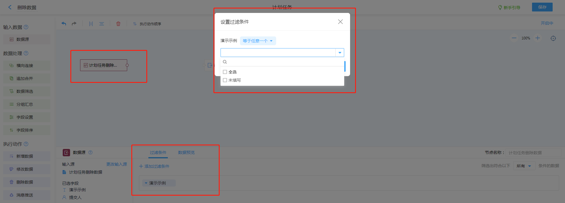 点击此链接【数据助手 - 计划任务删除数据】可以跳转至易用云官网 >>> 解决方案 >>> 数据助手功能示例进行实际操作效果演。