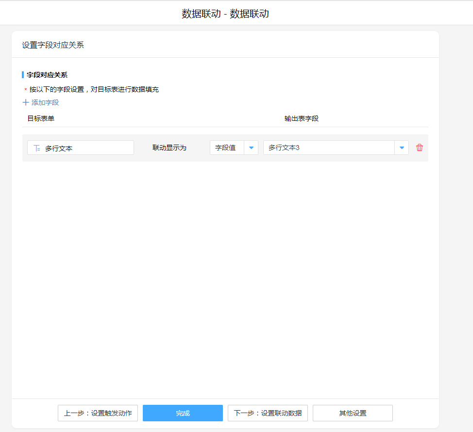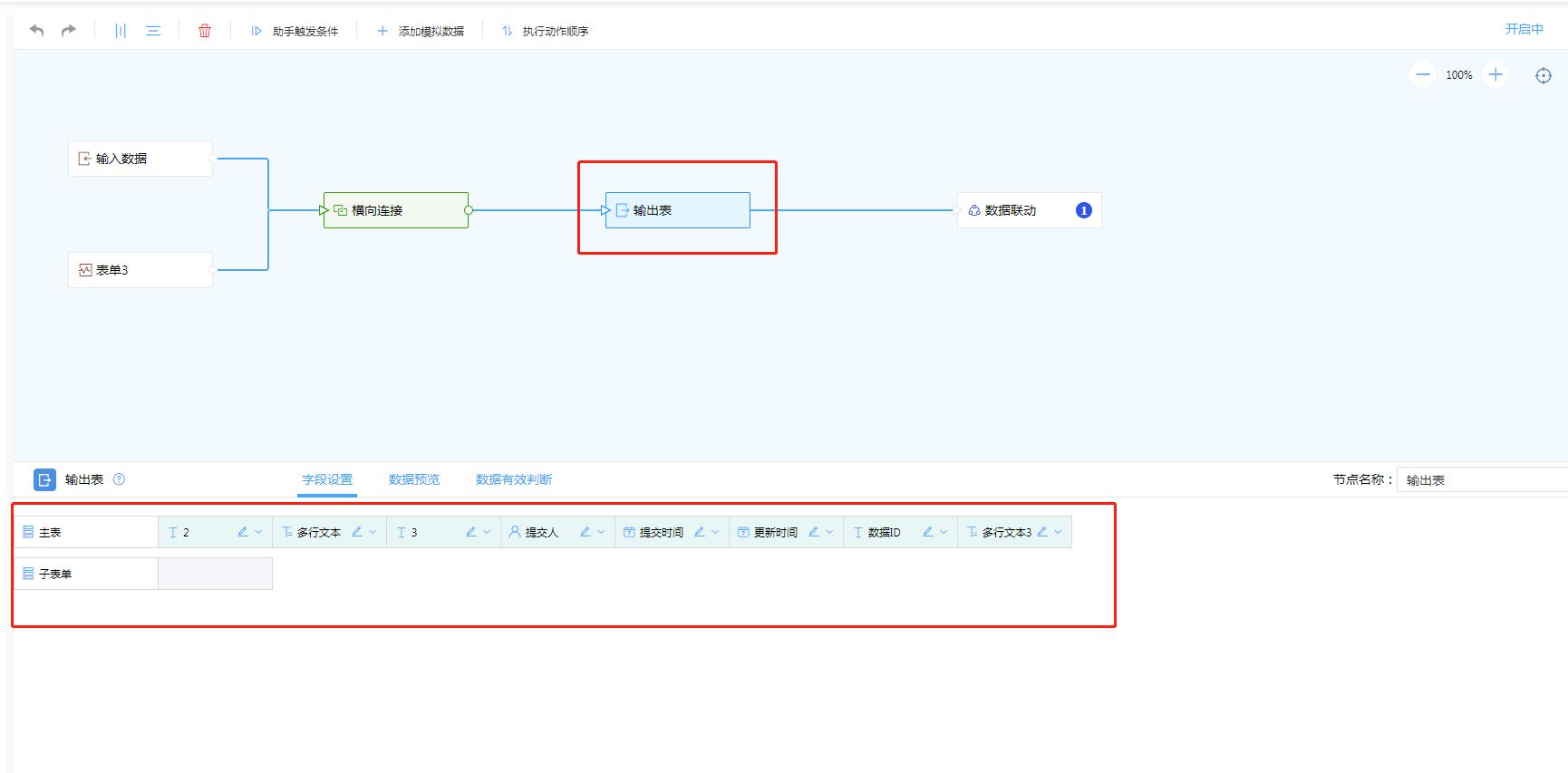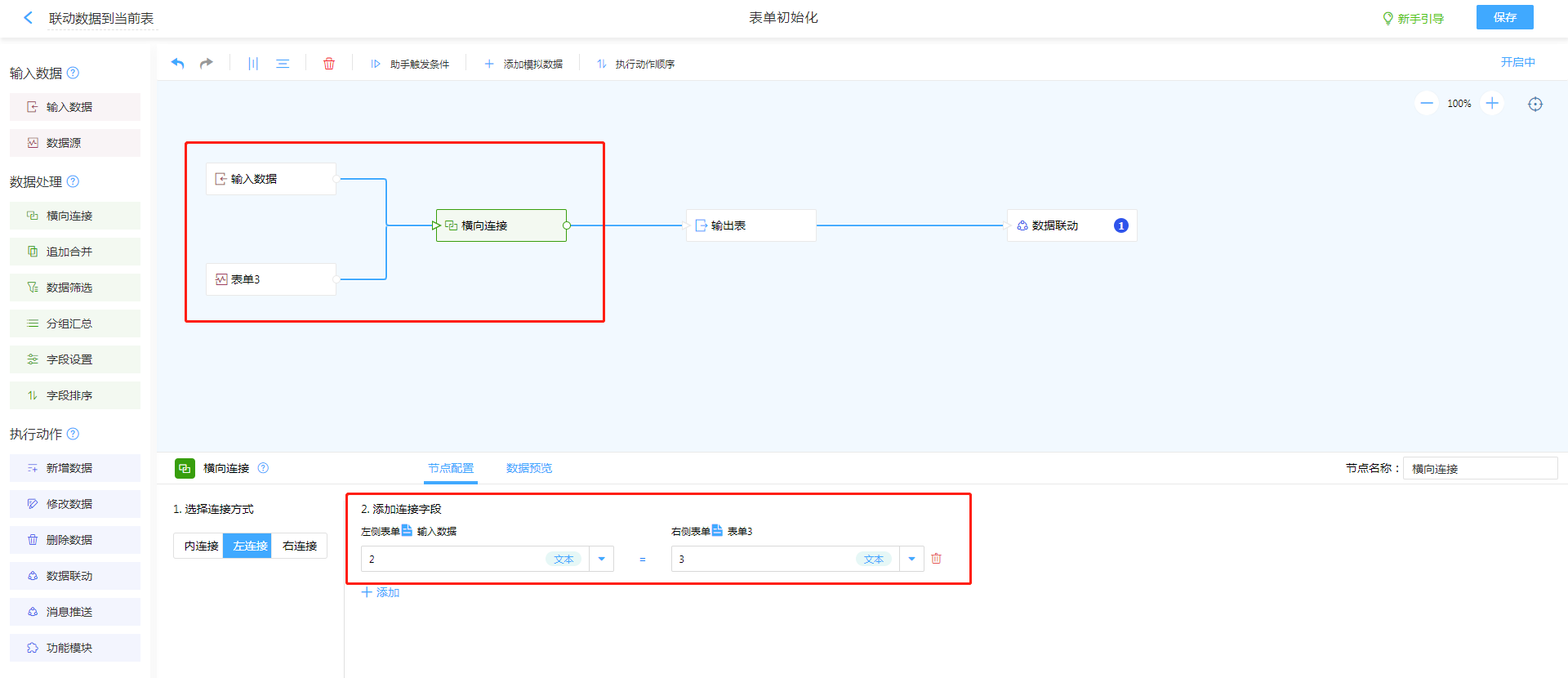 1. 添加执行动作数据关联,将表单2与表单3字段进行联动。