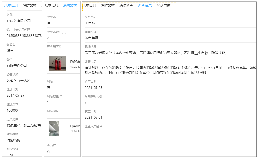 · 消防巡查中,通过多标签页的显示管理消防巡检情况,可以及时掌握设备运行状况,保证设备的安全,实现防火巡检和日常消防安全管理等工作的户籍化、痕迹化管理。