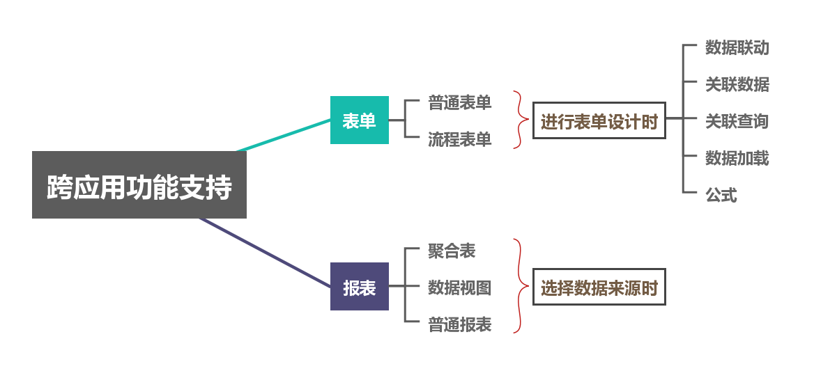 在易用云使用跨应用功能,可以实现应用表单、报表数据之间的关联,便捷地调用其他应用中的数据。