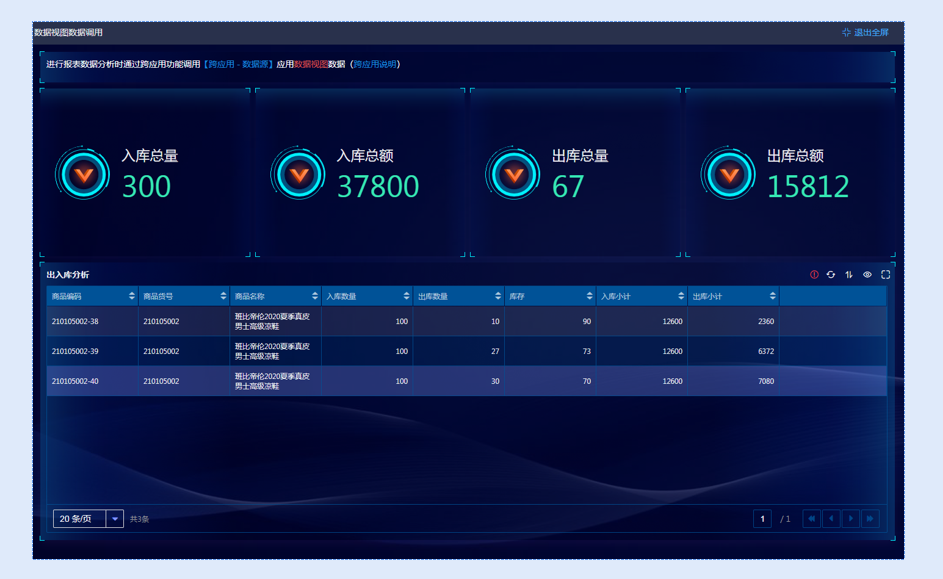 例如:在任意应用中调取进销存应用的跨应用数据视图数据信息。