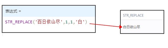 | new_text | 将替换old_text中字符的文本 STR_REPLACE(字符串1,2,4,字符串2),即将字符串1中的第2位之后的4位(即2,3,4,5位),用字符串2来替换 |