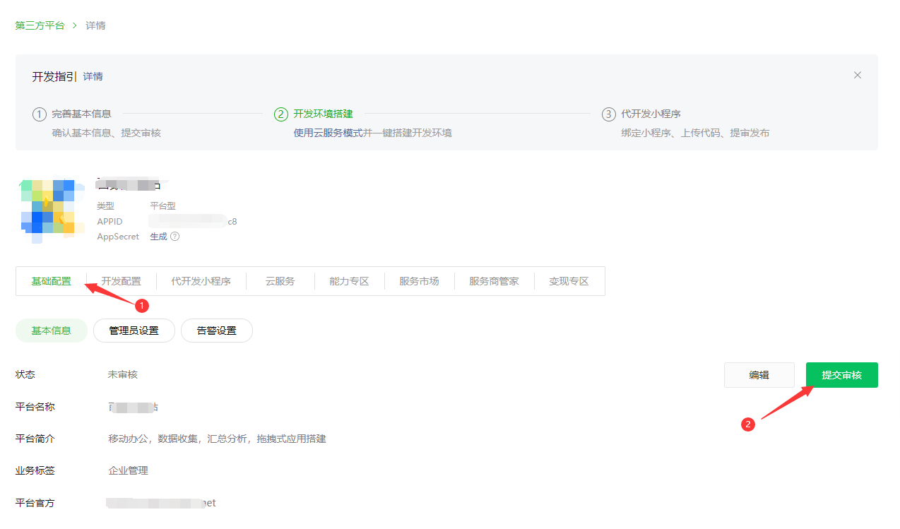 进入管理中心->第三方平台->找到刚才创建的第三方平台点击详情