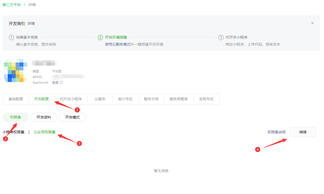 找到开发配置->权限集->公众号权限集->编辑添加权限