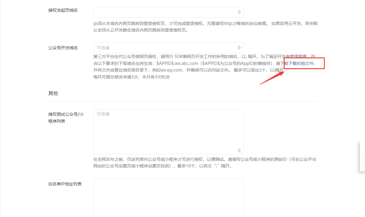 | 消息与事件接收配置 | https://私有云域名/weixin/callback/$APPID$ |
