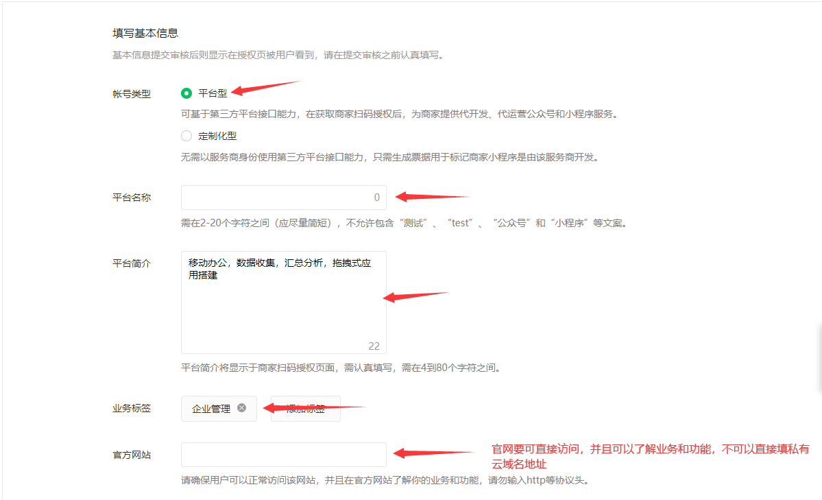已购买商务授权,有可直接访问能了解相关业务和功能的官方网站,有已认证开发者资格的微信开放平台账号(该账号是私有云运营方账号,不是客户的账号)