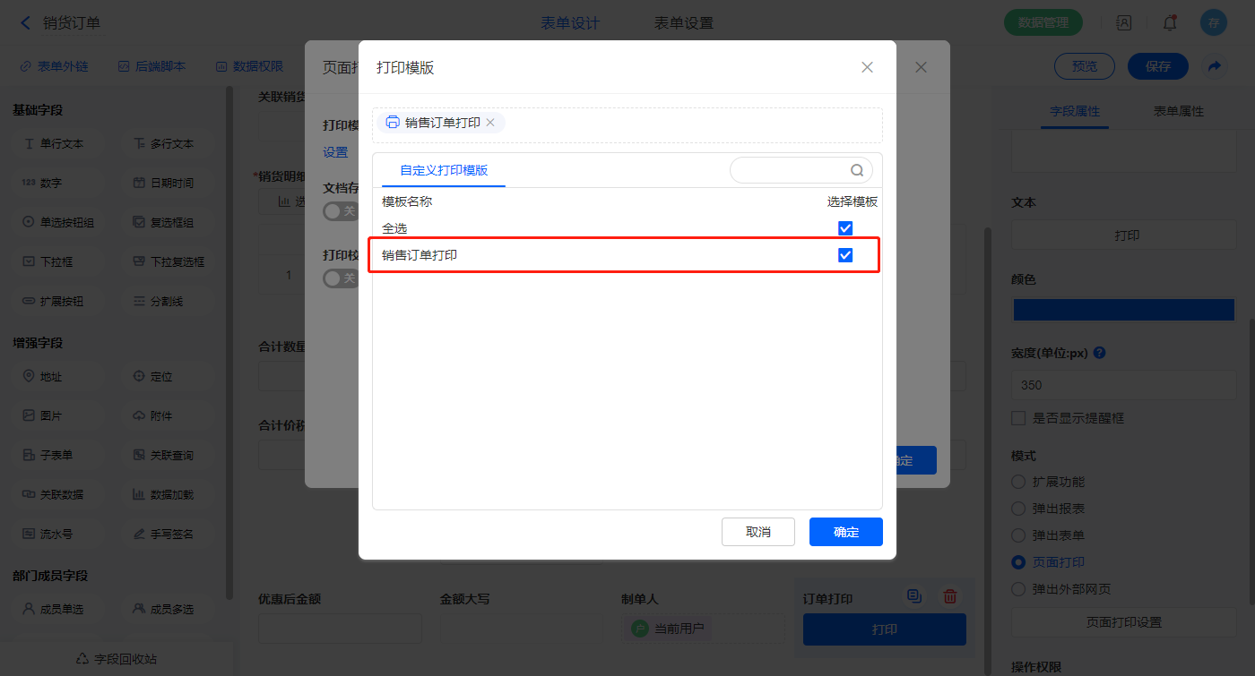 2.12、表单【销售开票记录表】字段及表单属性设置
