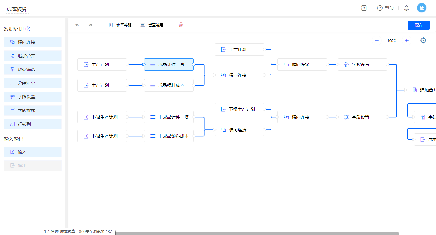 计算主生产及子生产计划的工序成本、领料成本,统计出总的生产成本金额。