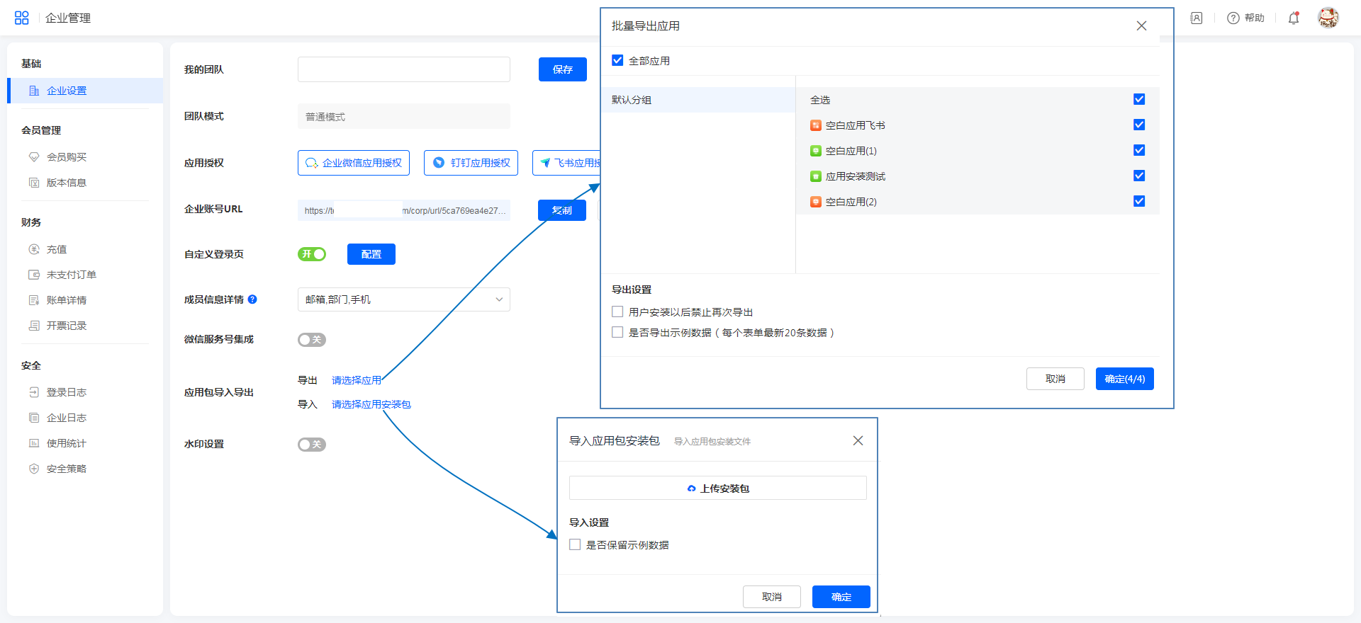 当同时批量导出多个安装包时,应用的跨应用设置会一同导出。