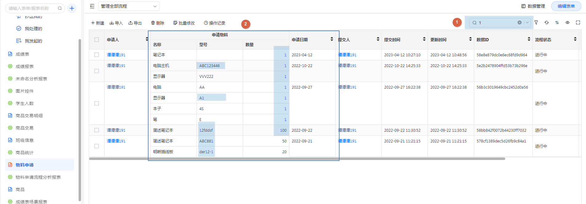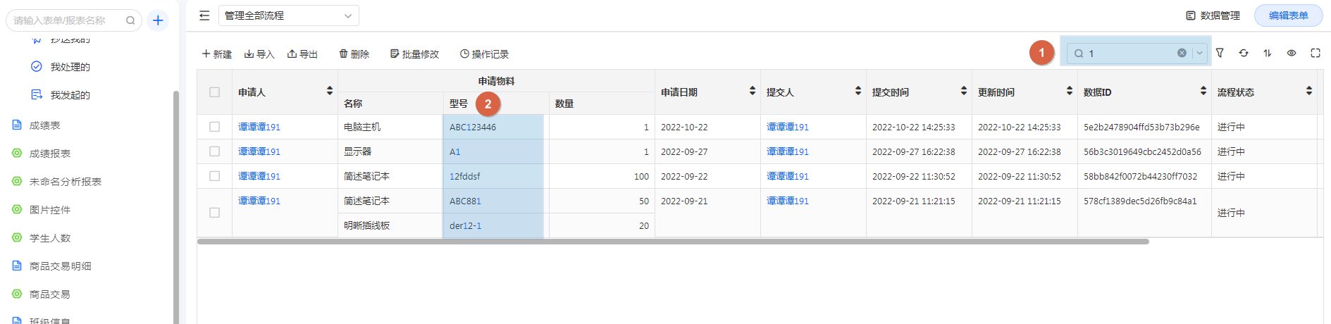 当数据量较大时,数据管理页可以通过关键词搜索快速检索需要查看的数据。