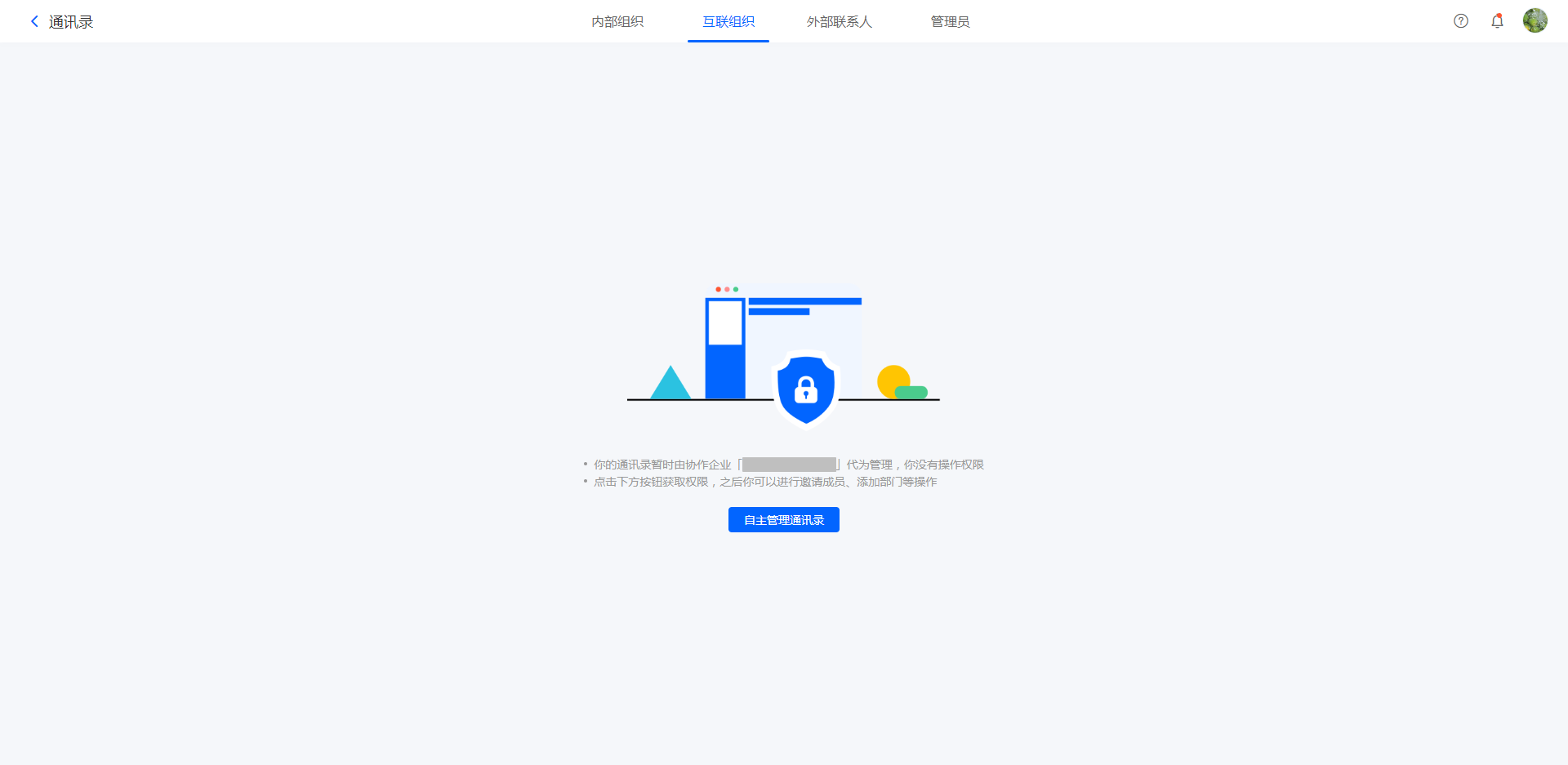 - 通过邀请链接进行企业互联时,若公开链接设置了代管权限,连接后也可具备通讯录代管权限。