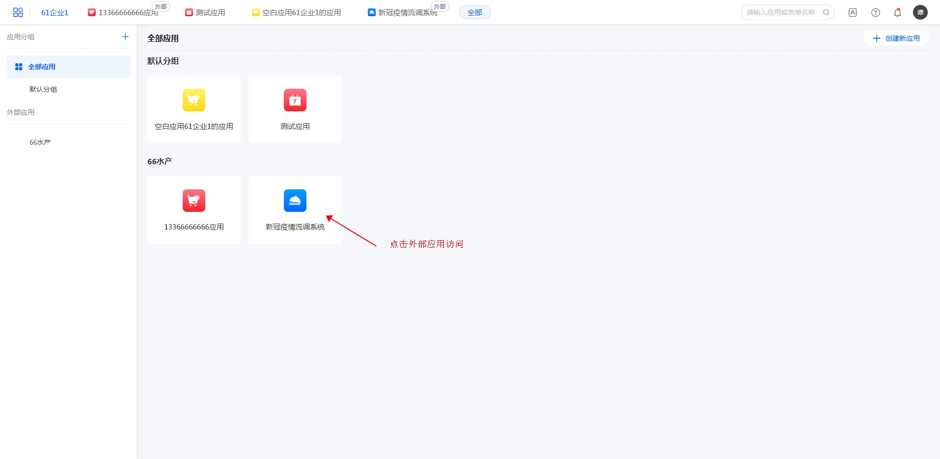 2:、在全部应用->选择外部团队->点击外部应用访问。