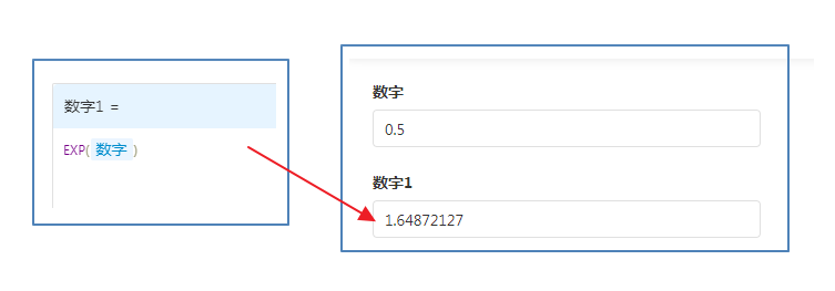 如计算EXP(0.5)的值,返回1.64872127。