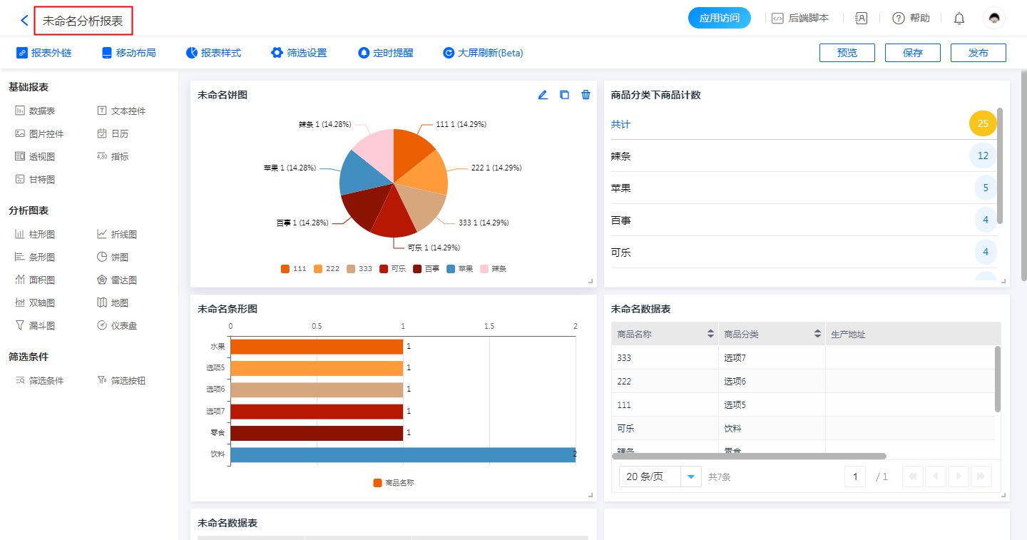 默认为【未命名分析报表】,编辑报表页面,点击左上角进行报表名称的更改。