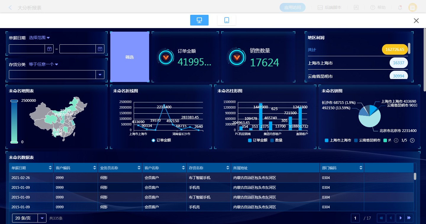 报表预览界面分为PC端和手机端,可预览不同终端的展示效果。