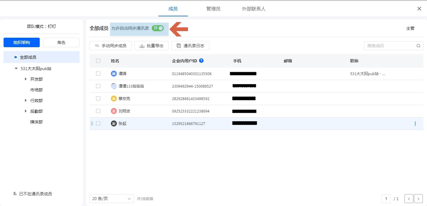 通讯录同步到表单开关,详情可参考通讯录同步到表单