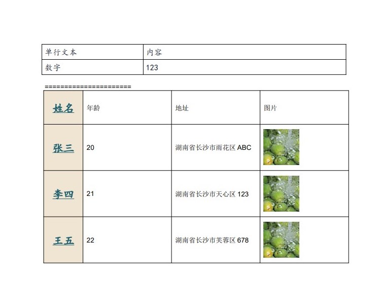 | datas.markList | 否 | Object | 自定义表格数据列表(仅支持word模版); 自定义数据,可自定义字段内容及风格。 mark_key:标识,文字可自定义。将\${mark_key}写入Word打印模板中,调用本接口实现打印。 header_style:表格的表头样式。 value_style:表格中值的样式。 header:表格的表头值。 value:表格中的值。 |