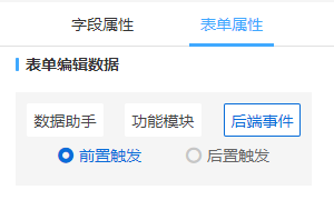 当表单修改数据时,在修改数据前或在修改数据后触发_formupdate事件。默认为"前置触发",详情请见后面的事件触发示意图 。