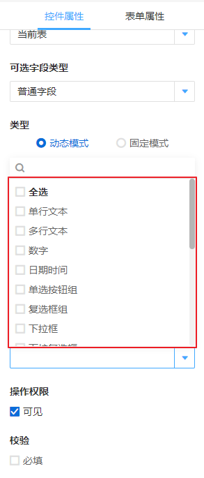 类型是设置字段添加字段的模式,类型有两种,分别是动态模式和固定模式。