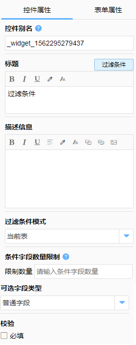 对过滤字段可以关联的其他字段进行限制,避免选择不被支持的字段(默认为同类型的字段,可以选择包含多个类型)。