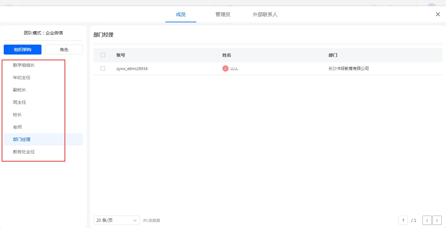 | 系统通讯录角色列表 | 企业微信通讯录标签列表 |