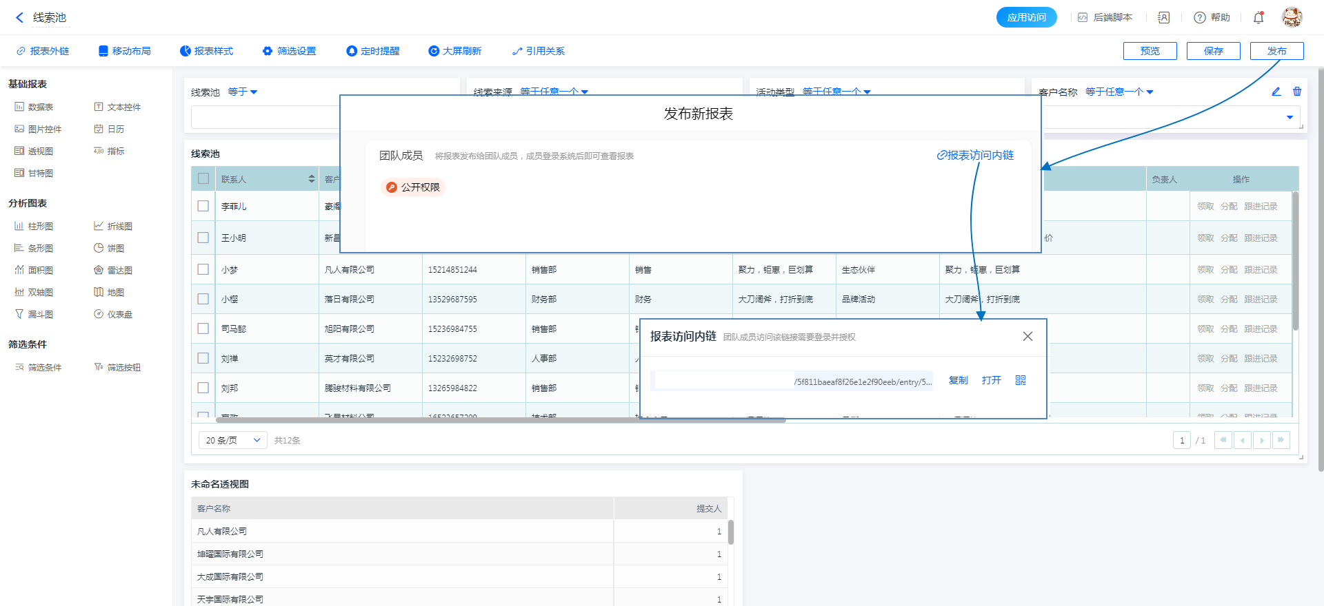 除了可以分享表单、报表外,还可以将表单中的数据发布为独立的公开链接,无需登录即可访问数据。