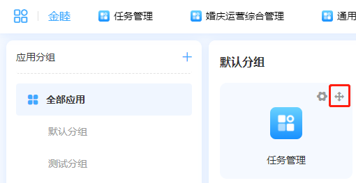 当鼠标移到需要移动的应用上后,应用右上角会出现【十字箭头移动图标】。