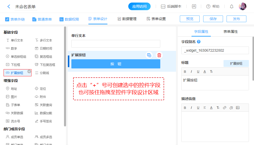 | 创建字段、表单预览 |