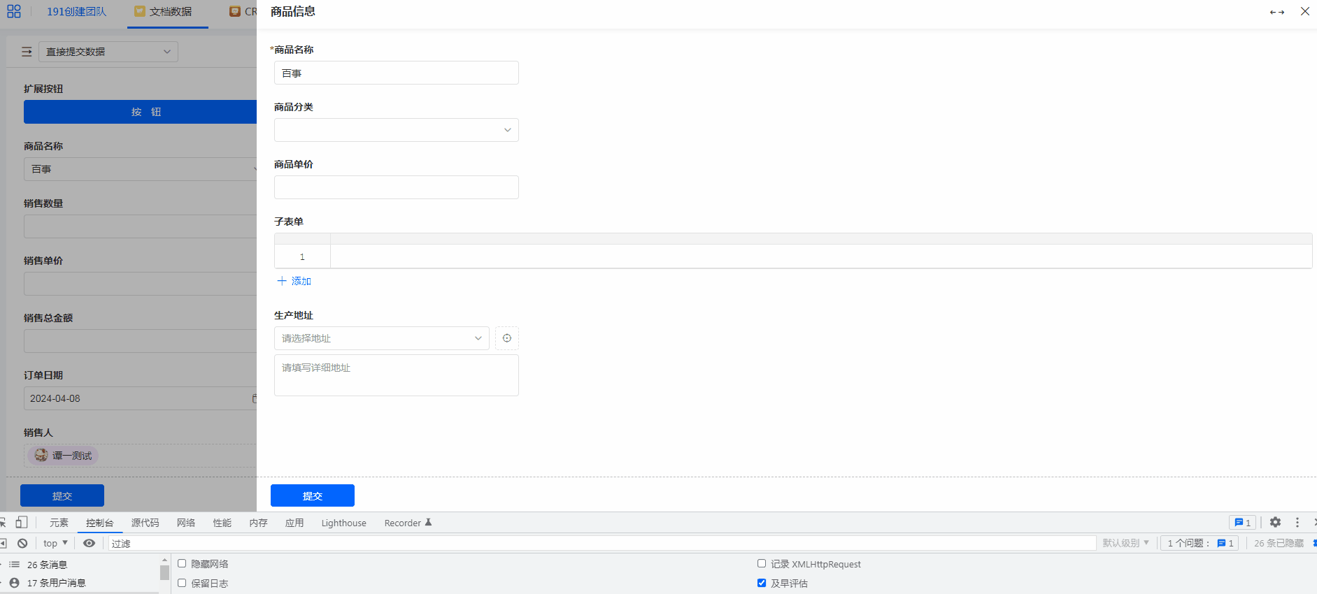 当前表单提交或编辑数据时,点击按钮,弹出表单,编辑弹出表单并提交后,关闭弹出表单,发现弹出表单的字段值自动回写到当前表单的对应字段中。