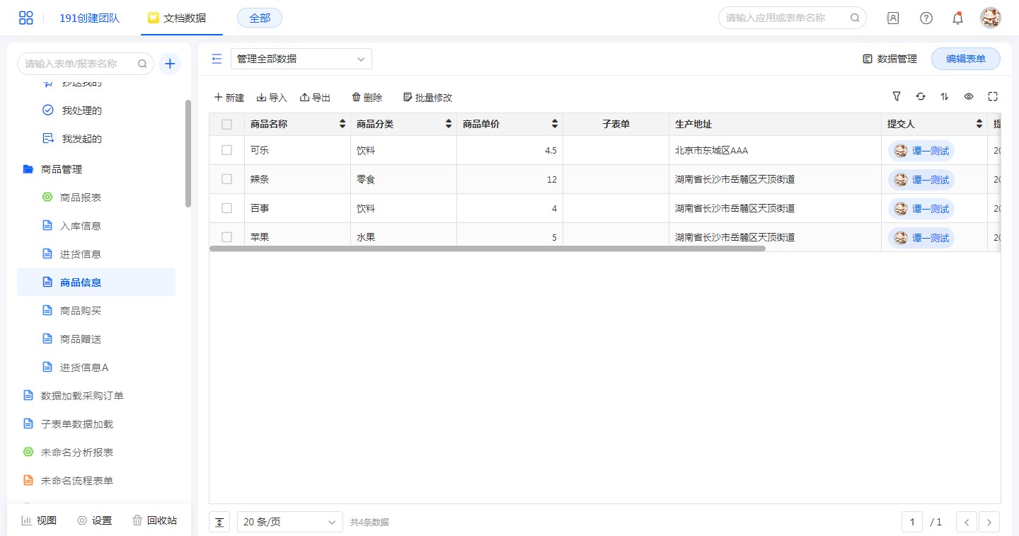 - 指表单访问-数据管理,此页面不受权限体系管理,只有系统管理员可以进入。