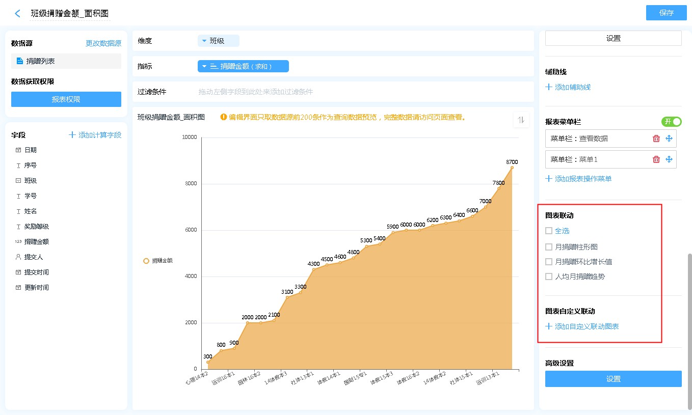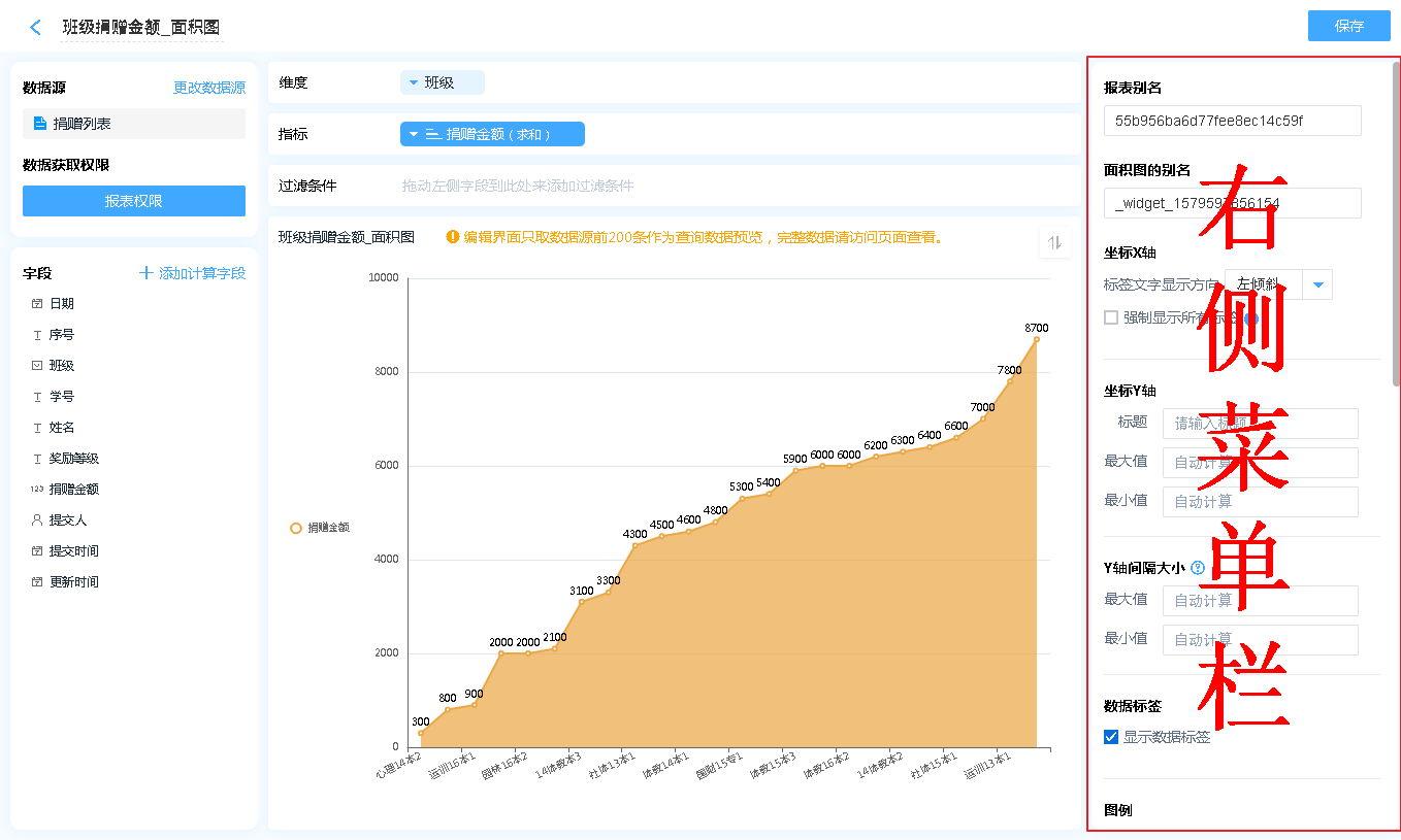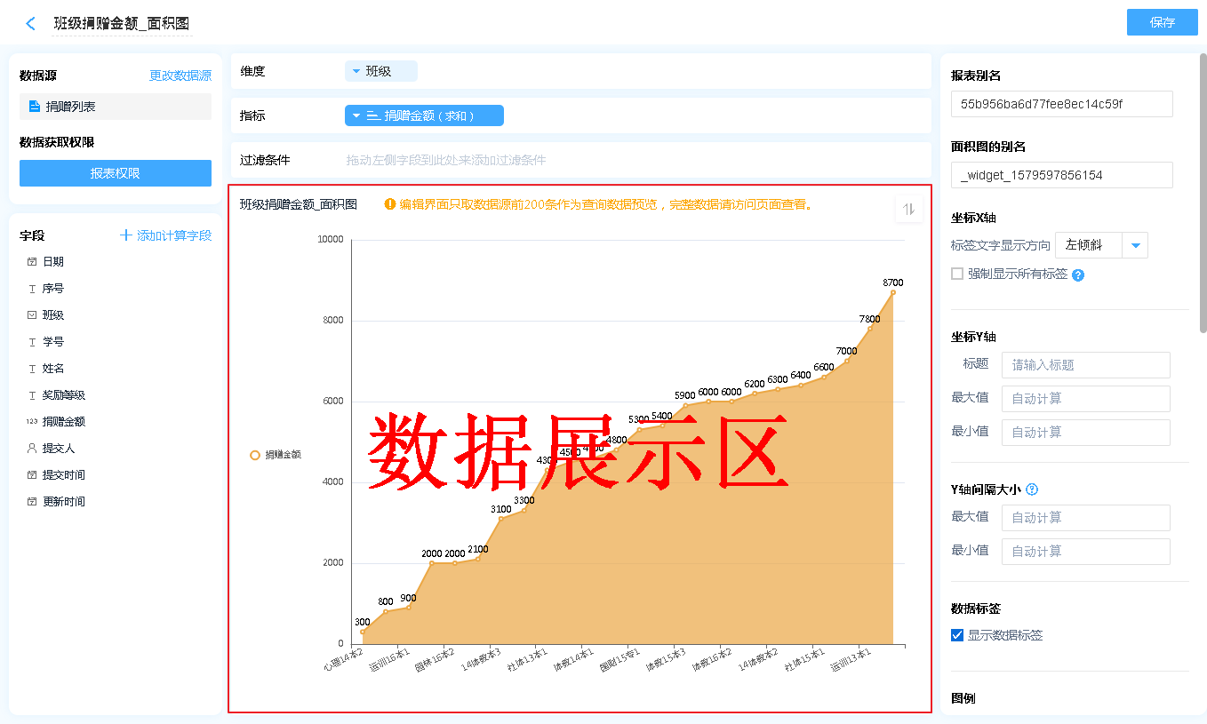 数据源就是指当前面积图表的数据来源,可以是表单、数据视图、聚合表。