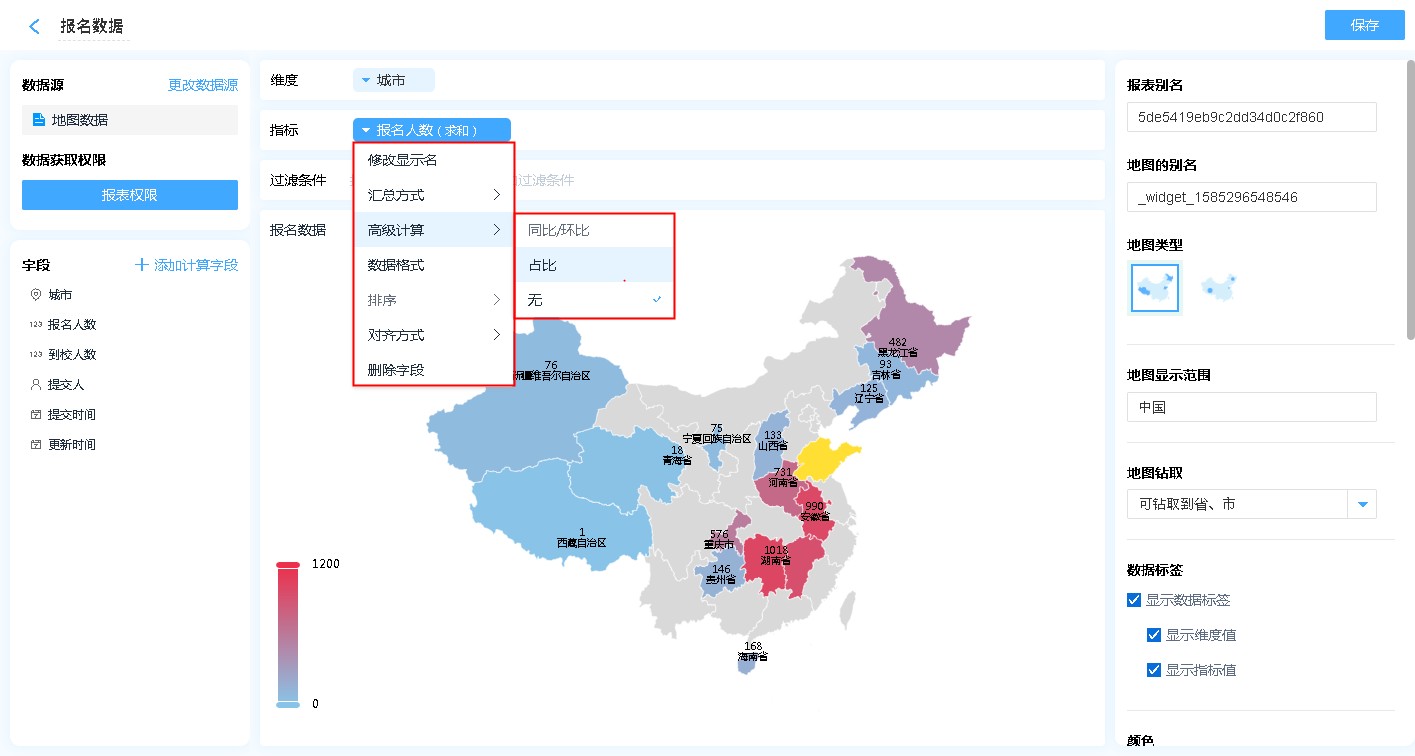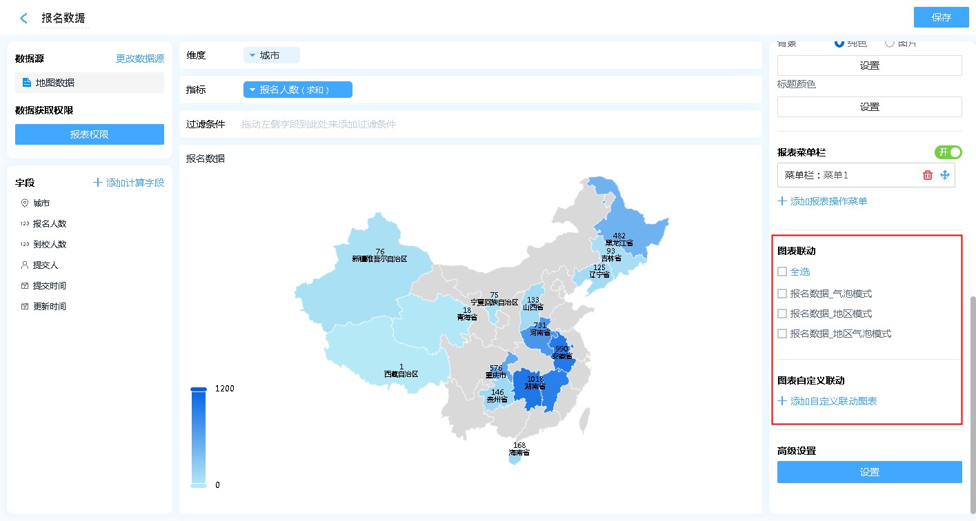 地图报表主要用来统计不同区域的数据,进行数据分享;