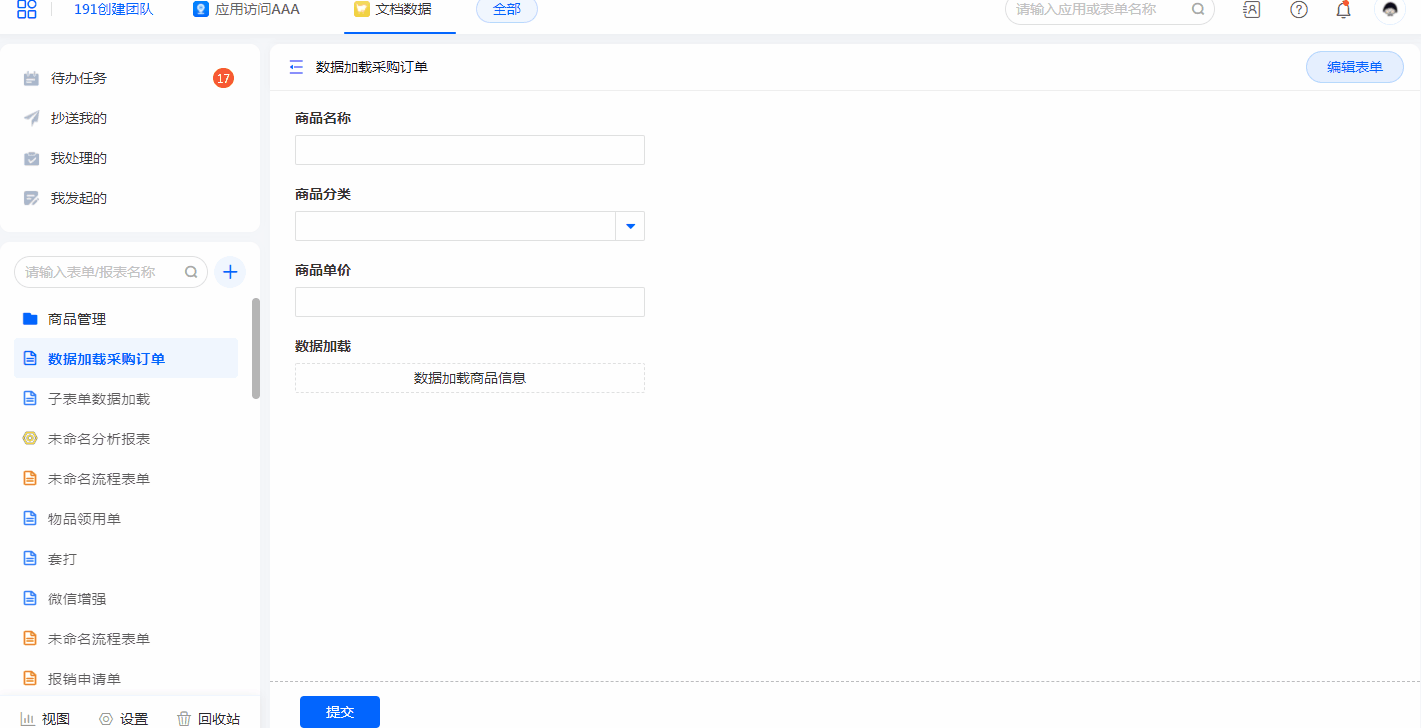 - 弹出表单 点击对应菜单按钮后,在当前报表页面 弹出一个新的页面,在此页面加载指定表单的内容。
