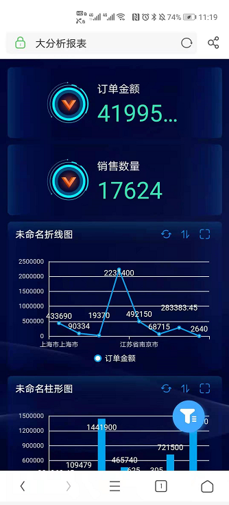 - 移动布局未开启时,移动端的布局样式按照默认样式及顺序排列,此时控件的顺序和PC端报表顺序一致;移动布局开启后,移动端的布局样式和各个控件的排序按照移动布局中的设置展示。