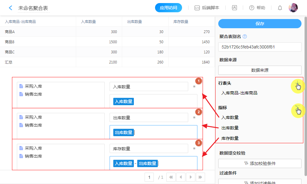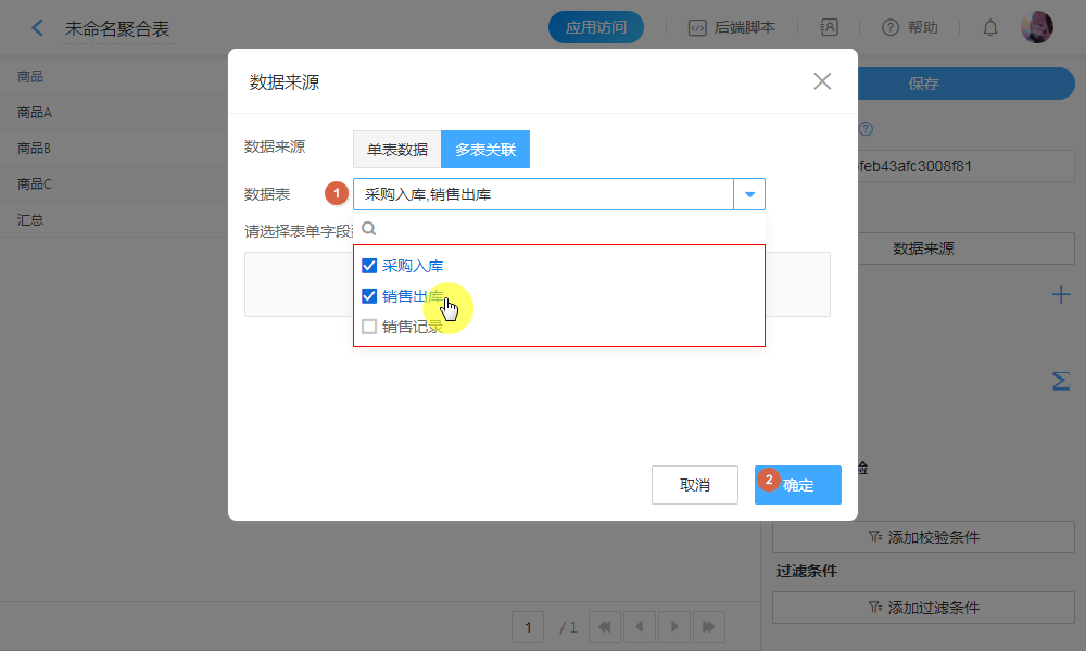 选择需要聚合计算的多张表单。