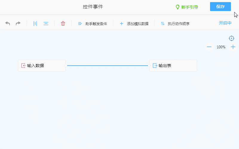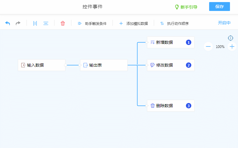 | ④ | 助手触发条件 | 根据“输入数据”与“子表单当前行”节点传入的数据进行条件判断,成立则执行助手功能。 |