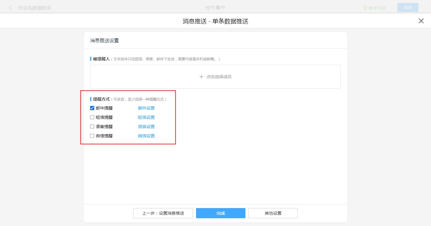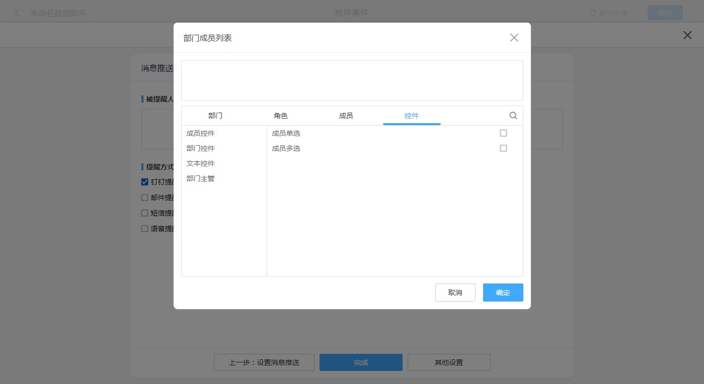 | 被提醒人 | 部门、角色、成员、控件 |